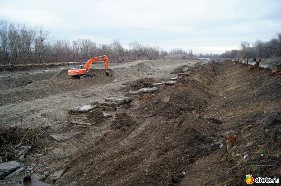 В данный момент ведется строительство набережной вдоль реки Кубань, работа кипит во всю, но конца еще не видно