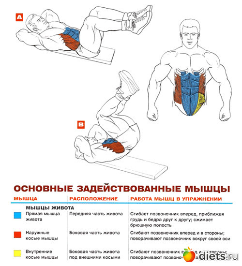 Полностью отрывайте таз от пола в верхней точке! Без этого вам не удастся максимально сократить мышцы живота.