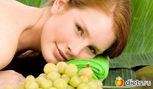 Для процедуры виноградного обертывания используют массу из лечебной глины, виноградных листьев и косточек. Лечебную массу наносят на тело, и на 20 минут, потом все смывается. Виноград оказывает интенсивное воздействие на восстановительные процессы в клетках кожи, увлажняет ее, повышает упругость и эластичность. Виноград используют в уходе за увядающей, шелушащейся и проблемной кожей.