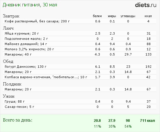 Ну не верю я в то, что сожрала всего 711 калорий. Не. ве. рю. Вроде бы так много ела, а в итоге так мало получилось. Странно.