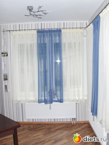1. высота до потолков около 2,40. т.е. не высокие, а т.к. эркер и большое окно не далеко друг от друга, мне показалось, что будет "тяжело" смотреться. а так, на мой взгляд кокетливо. мне вообще нравятся короткие шторы, если батареи позволяют