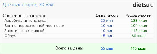 Питание за сегодня записать не получилось, но кушала в пределах нормы, спорт сделан.