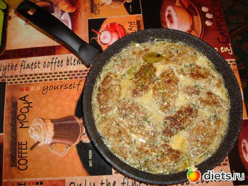 Когда котлеты будут готовы, перекладываем в кастрюлю. На эту -еже сковороду наливаем воду, и размешиваем в ней 1-2 ложки сметаны, режем мелко лук, и морковь, морковь натираем на крупную терку, чуть чуть солим, добавляем кореандр, 1 чл крахмала, все хорошо мешаем пока не начнет чуть -чуть закипать. Выкладываем котлеты в сметанный соус