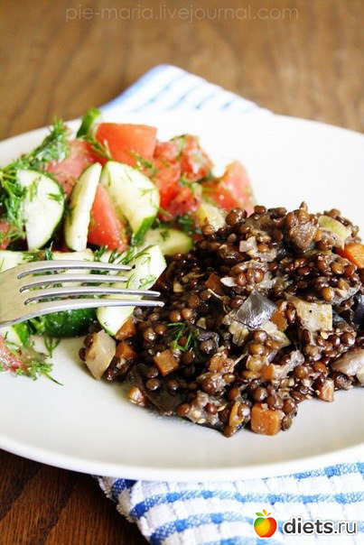 Чечевица не должна быть разварена – пробуйте на вкус, и если что, еще добавляйте специи. В конце любители могут добавить соевый соус – он всегда отлично сочетается с чечевицей. Приятного аппетита!