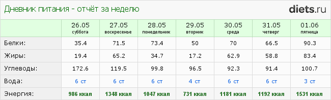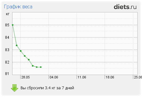 Итак прошла первая неделя. Вес упал с 85 до 81,600 кг.