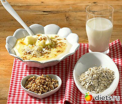 Каша – классическое утреннее блюдо. Крупы могут быть любые, не стоит только усердствовать с манкой. Низкокалорийной эту крупу не назовешь, и клетчатки в ней совсем немного.