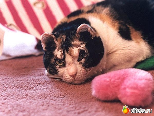 30 марта 1996 года в одном из заброшенных гаражей в Бруклине начался пожар. Пожарные, прибыв на место, быстро справились с огнём. В процессе тушения пожарный Дэвид Джианелли ( англ David Giannelli) увидел кошку, которая вытаскивала из горящего гаража котят одного за другим. Сама кошка при этом уже сильно пострадала от огня: были сильно обожжены уши и лапы, опалена морда, сгорела почти вся шерсть, глаза были закрыты волдырями. После того как она вытащила пятерых котят в безопасное место, она ткнулась в каждого из них носом и потеряла сознание. Пожарный доставил обожжённую кошку с котятами в ветеринарную клинику Лиги защиты животных Северного Побережья (North Shore Animal League) в Нью-Йорке, где им была оказана немедленная медицинская помощь. Однако самый слабый из котят, белого окраса, умер спустя месяц после пожара. Самой кошке, которой дали имя Скарлетт, на реабилитацию потребовалось три месяца, однако не все функции организма были восстановлены. Так, специальную лечебную мазь для глаз ей необходимо было наносить трижды в день.