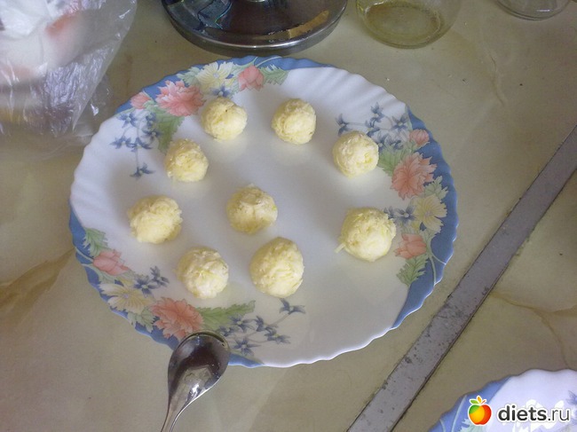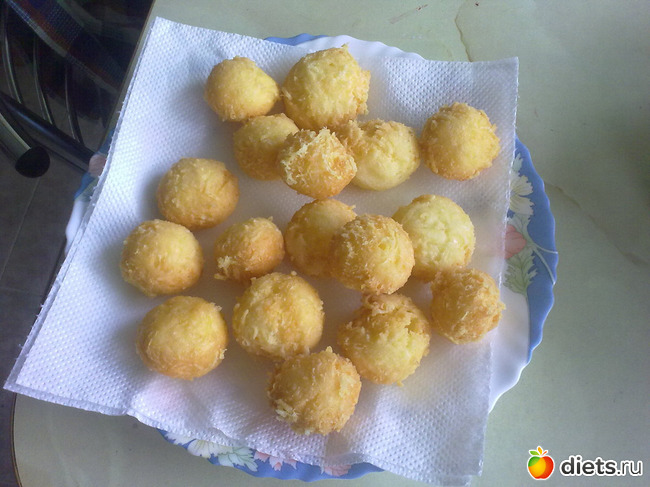 На вид очень аппетитные шарики, да еще и из сыра(моя слабость), но делать я их не буду, после творожных - еще не отошла.