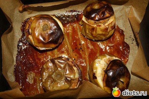 печеные яблоки ела всю осень и зиму ,но только ложила изюм и поливала медом и присыпала сахарной пудрой,обалденно вкусно!