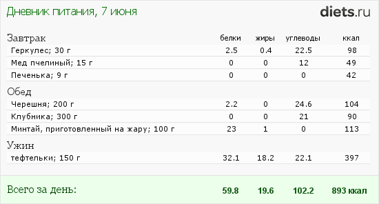 Калорийность продуктов