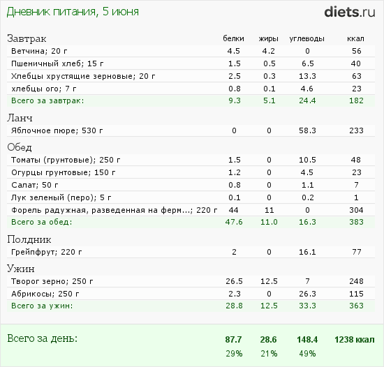Сегодня питание было таким: