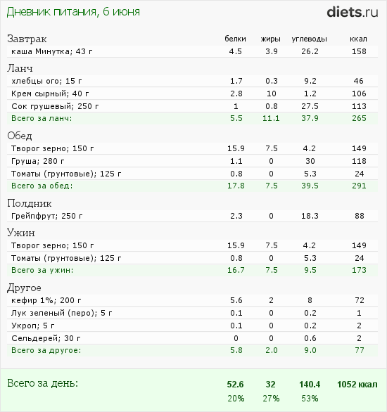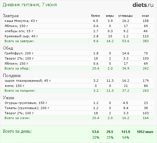 В среду, то есть вчера мое питание было таким: