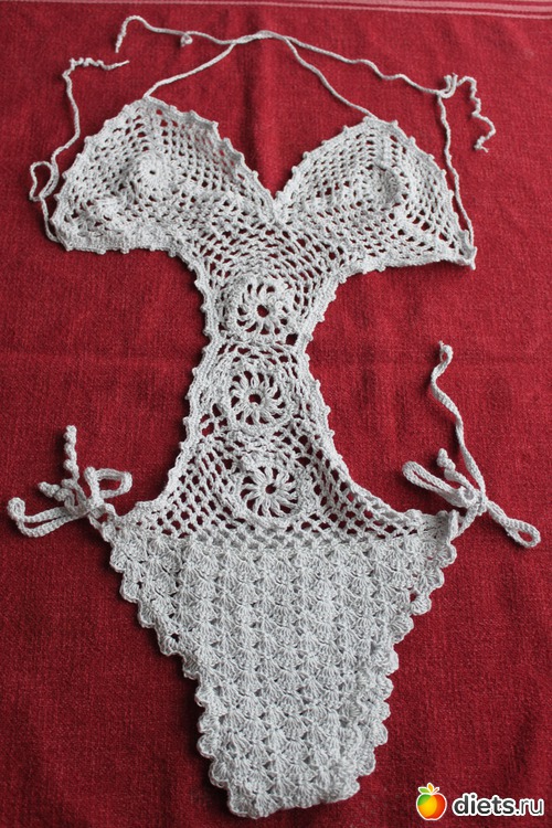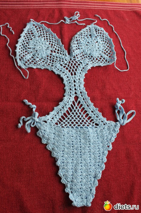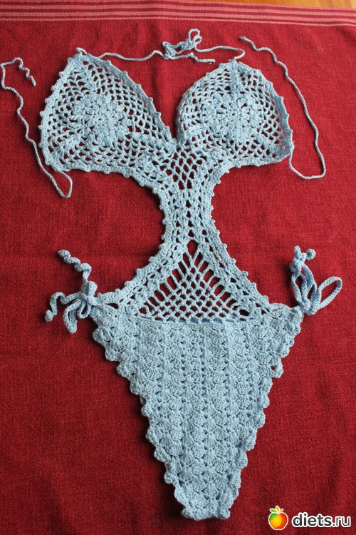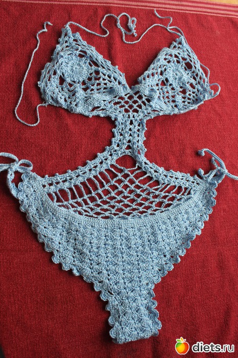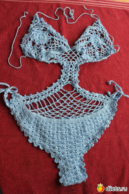 Моя родственница умеет прекрасно вязать крючком. Заказала ей связать по моим эскизам несколько купальников разных цветов. Все получились такими чудесными, что хотелось бы их все оставить себе. Но, до идеальной фигуры еще 12 кг. Думаю открыть что-то вроде интернет-магазина модных купальников. А то в декрете скучновато...