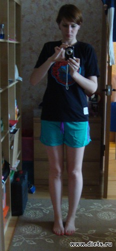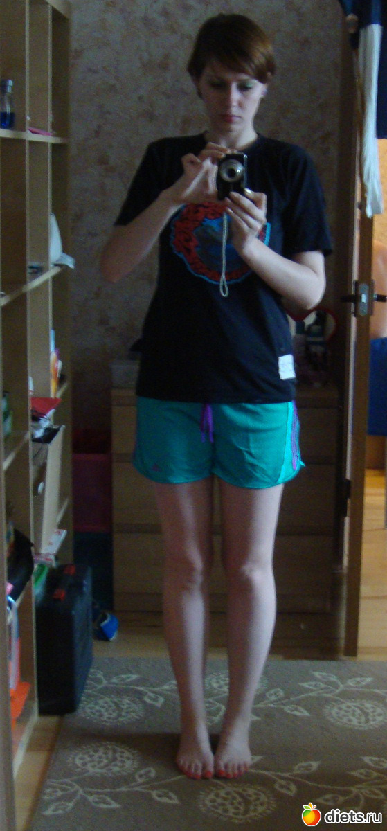 А, и, конечно, поделюсь радостью - купила себе на дэрэ подарочек - шорты для бега. Крутого цвета. Заюзаю уже завтра, ога)))) На память - фото с шортами. И вообще, очертания моей тушки на данный период времени.