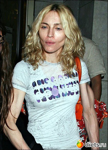 ВОПРОС: Мадонну знают, как активного поклонника фитнеса, адепта правильного питания. Неужели все это на самом деле не работает, и ничто не спасает Мадонну от узловатых вен и высушенных мышц?