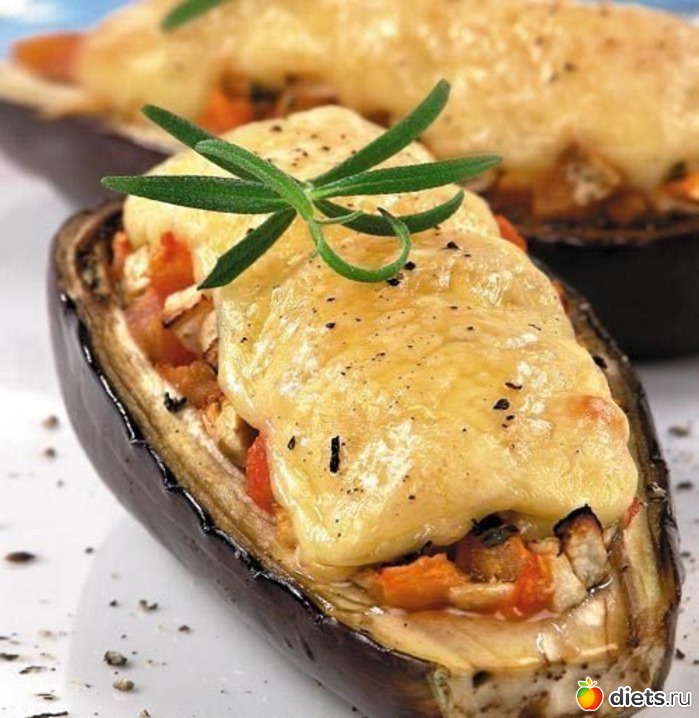 Баклажаны с курицей под сыром 121 ккал на 100г