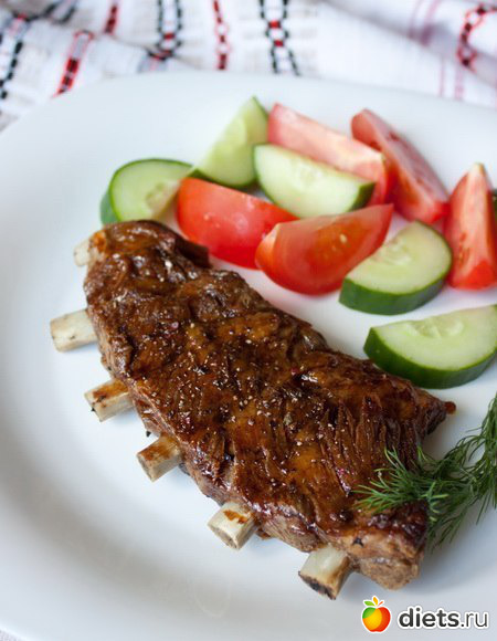 4. Кладем ребра на решетку и помещаем на мангал над средним жаром. 5. Жарим, постоянно смазывая соусом терияки, со всех сторон около 15 минут в общей сложности.