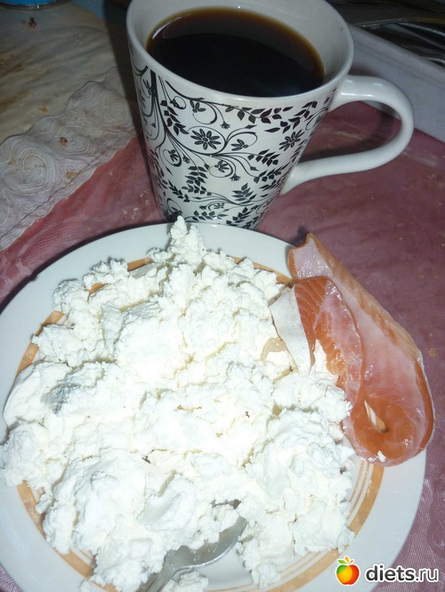 Завтрак - обезжиренный творог, рыбка, кофе
