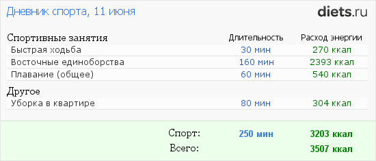 А мы с дочей халявничаем, пользуемся свободой- никаких экстримов, еда- самая непритязательная, скорее даже в нынешнем понятии "вредняшка"- но то для меня, а Наташке можно и пироженое, и мороженое, и фрукты. Из перечисленного позволила себе абрикосы- 200гр, в этом году первый раз пробу снимала...Моя кал за день 851 ккал, и если весы утром мне не соврали, то меня таки стало еще чуть-чуть меньше. Перепроверять завтра буду!