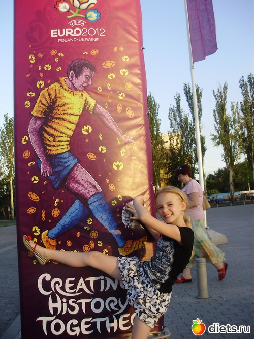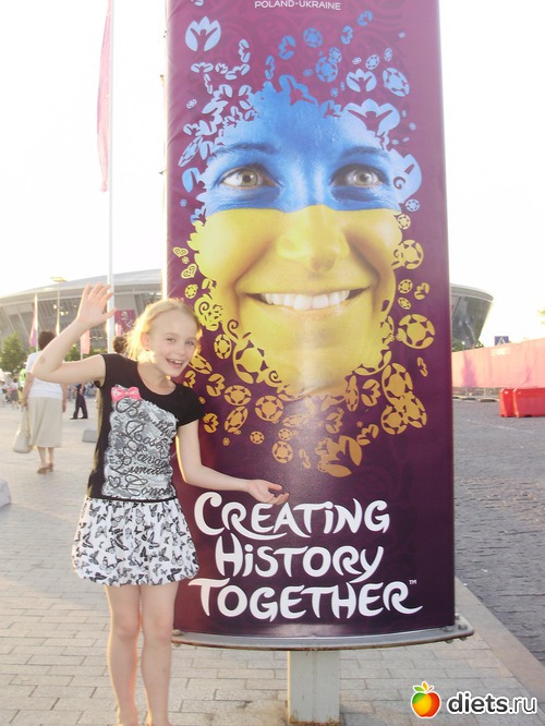 Доброго всем вечера!!! Вот и у нас начался первый матч Евро-2012. Поскольку я живу рядом со стадионом, то не могла не сходить туда на экскурсию. И не даром. Сказать, что я удивлена организацией - это не сказать ничего. Вот могут же когда хотят сделать по человечески!!! Во-первых, людей не так и много, во-вторых, много милиции и волонтеров!!! Мало пьяных!!! Все красиво!!! Где-то с 2 часов дня над стадионом начали летать вертолеты с флагами Англии и еще чем-то, не увидела с чем. А вот и наш крутящийся гранитный мячик с логотипом нашего Шахтера. Как он крутится непонятно...говорят, только силой воды.