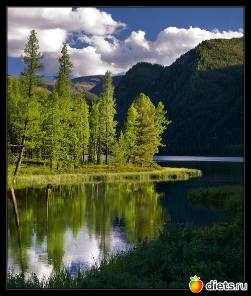 А ещё говорят, что редко на планете встречаются сразу горы, озеро и вокруг хвойный лес,