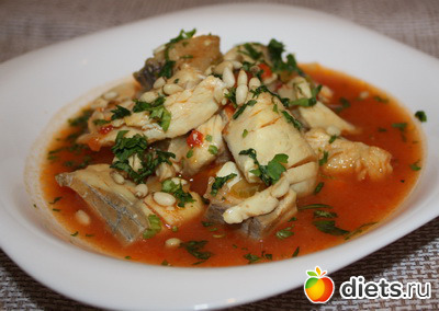 Готовое блюдо посыпаем орешками и рубленой зеленью.