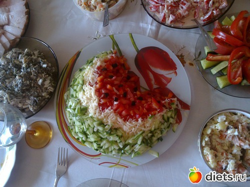 Сестренка помогла с готовкой, а так бы я ничего не успела, одним из блюд был салат "Арбузная долька" - очень оригинальный и вкусный!