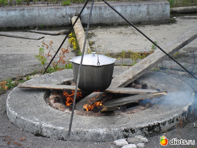 Побились - поели! Говорят, что каша вкусная была! Её варили прямо здесь!