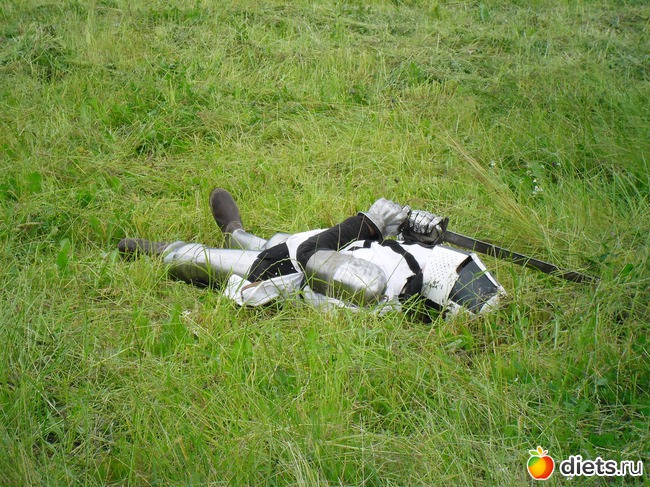 Между прочим, рыцарские доспехи весят по 30 и более кг, упавшему рыцарю всегда помогают подняться - сам он не может!