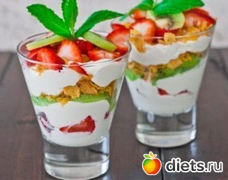 Diets.ru Прекрасный холодный десерт с клубникой, киви и кукурузными хлопьями 86ккал. на 100гр.