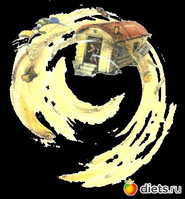 Степные ураганы не раз опрокидывали легонькое жилище фермера Джона. Но Джон не унывал: когда утихал ветер, он поднимал домик, печка и кровати становились на места. Элли собирала с пола оловянные тарелки и кружки – и все было в порядке до нового урагана.