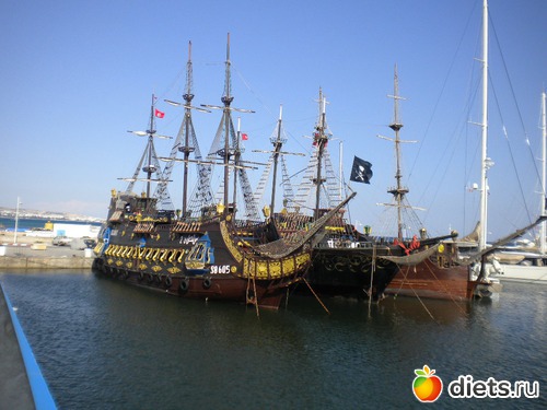 и пиратские корабли, которые возят туристов на морскую экскурсию (они идут к старому форту, на борту вас ждет обед и шоу факиров, обещают и купание в открытом море):