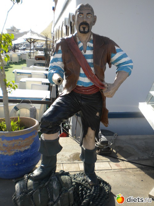 и пирата, зазывающего в морской ресторан: