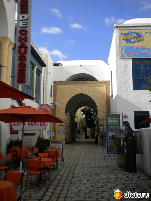 Это - главный торговый центр Хаммамета. Я, честно говоря, там ничего не покупала, но немцы, с которыми мы познакомились на отдыхе, очень хвалили обувные лавки, купили аж 4 пары летней обуви, купили они и рубахи из хлопка - очень красивые, с вышивкой. Еще я видела там ювелирные магазинчики, но внутрь не заходила.