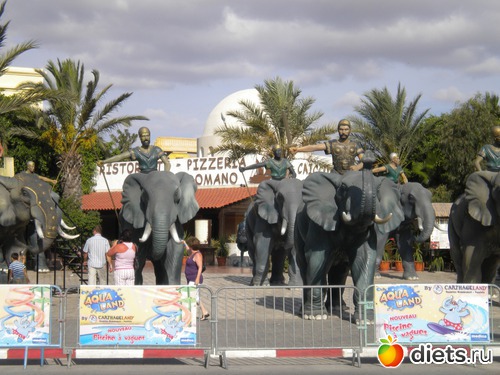 Выходим из Медины прямо к слонам Ганнибала, можно на левого слона забраться по лесенке и сфотографироваться