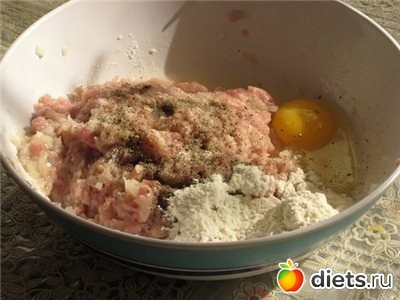 Из продуктов для котлет делаем куриный фарш, хорошо все перемешав.