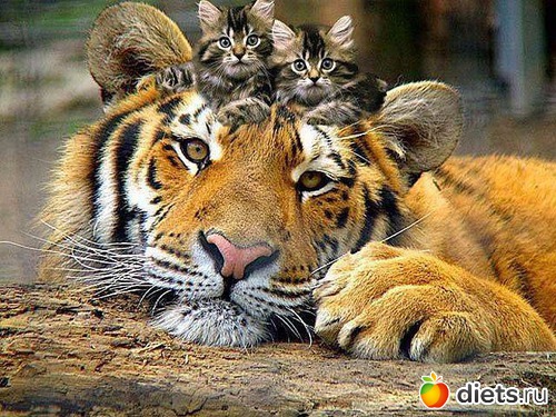какие они милые, обожаю кошек, а фото с тигром и 2-мя котятами - великолепная!!!