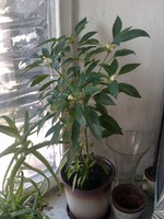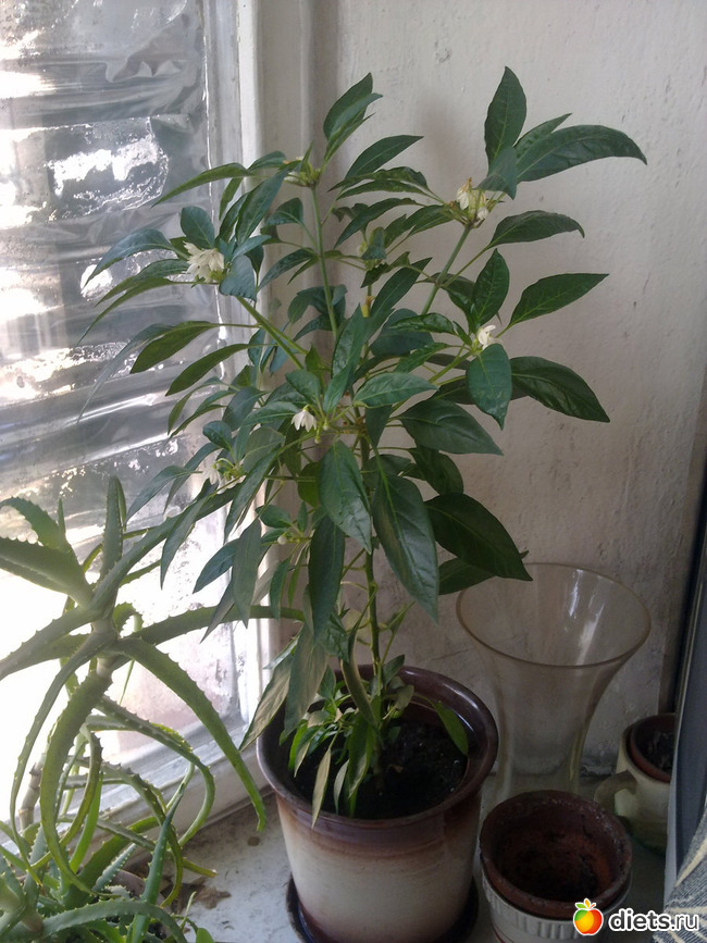 дала маленький росточек, а он вот какой вымахал и еще и урожай появился