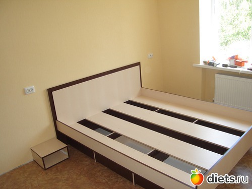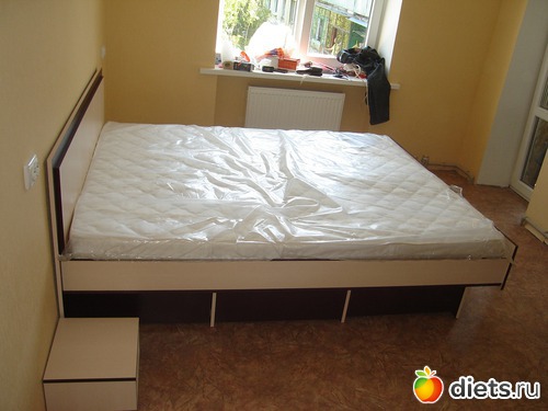 Вот такая у нас прелесть теперь стоит в спальне. Осталось только просверлить 4 дырки и прикрепить тумбочки к кровати, но это мелочи