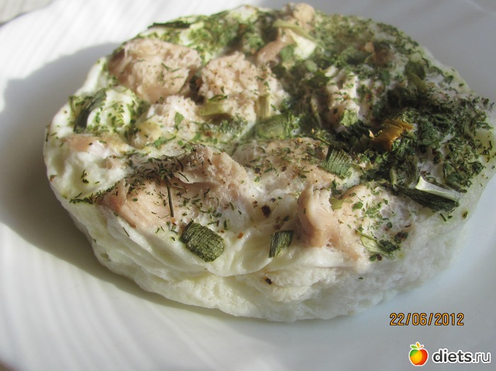 Калорий: 1134, белков - 156 г, жиров - 34 г, углеводов - 46 г.