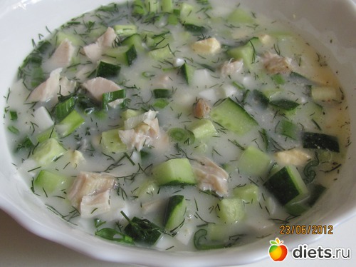 - окрошка на обезжиренном айране (на обед и на ужин)