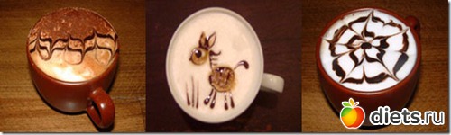 Чтобы рисунок выделялся более отчетливо, необходимо перед этим высыпать на поверхность кофе чуть-чуть какао-порошка