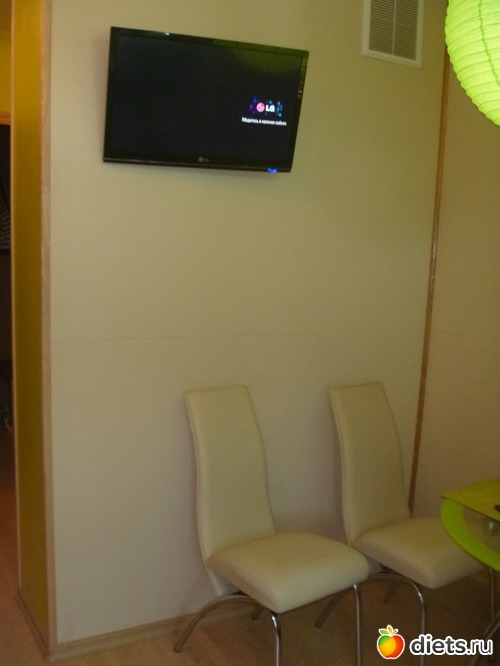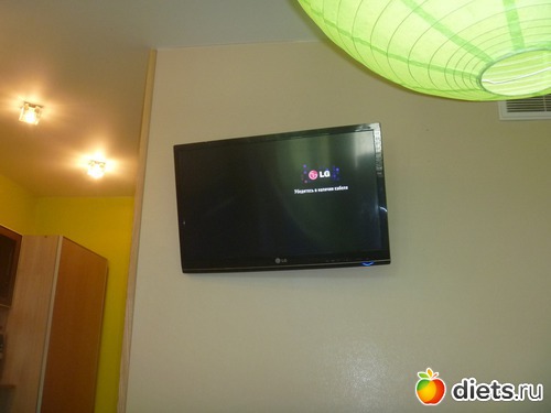 Ну вот и купили мы вчера телевизорик на кухню. LG Cinema 3D. Эффект 3D вчера оценивала с флешки - записала туда трейлер Титаника. Я смотрела же его в апреле в кинотеатре, так что было с чем сравнить. Это супер!!! Я в восторге. Все такое... объемное. Еще есть преобразование 2D в 3D (если захочешь). Пока не могу ничего сказать - цифровое тв на кухне планируем завтра провести. Там еще будет полочка под приставку, а сейчас на кронштейне специальном держится (стоит чуть больше 1000 рублей). В самом начале я спроектировала на стене две розетки, чтобы провода от телевизора не болтались снизу.