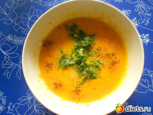 Рецепт морковного супа в полной версии: https://www.diets.ru/post/471951/. Сегодня вместо сливок было 100 мл молока 3,2%, добавила 1 ч.л. имбиря, морских гадов проигнорировала.