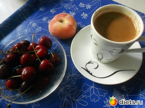 Полдник состоял из персика, черешни и кофе (не бойтесь за меня, я пью кофе без кофеина):
