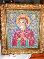 . А в свое время я изучала иконы - очень меня интересовала разница в изображении Богоматери на них... Казанская, Владимировская, Семистрельная...и присмотрела я маме икону "Богородица Умягчение злых сердец"...задумалась, какую купить, искала в инете и увидела красоту - иконы, вышитые бисером...имея опыт вышивания крестом, решила попробовать свои силы в бисере..