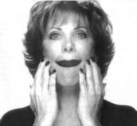 Делая упражнения, оставайтесь в этой позе. Она выполняет функцию своего рода якоря и позволит вам сосредоточиться на отдельных лицевых мышцах, над которыми вы работаете. Весьма приятный побочный эффект от этого упражнения, по утверждению многих моих клиенток, заключается в том, что объем бедер уменьшается. Кто-нибудь интересуется этим? Теперь запомните. Каждый раз, когда вы читаете слова: «Займите исходное положение», это значит: я хочу, чтобы вы приняли именно эту, описанную выше позу. Она замечательно усиливает эффект упражнений.