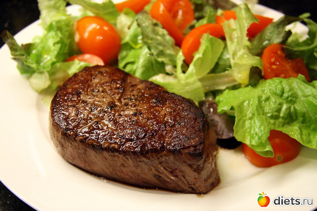1. Забываем о жарке в масле. Мясо жарим только на сухой сковороде! Максимум, можно капнуть растительного масла на ладонь и натереть кусок перед жаркой. Сковорода должна быть сильно раскалена: кусок обжариваем по паре минут с каждой стороны, и только потом доводим его до готовности в зависимости от выбранного способа (тушение, запекание, доводка под крышкой). Так в мясе сохранятся все соки, и не нужно будет добавлять к нему майонез или кетчуп, чтобы оно казалось более сочным. Для предварительной сухой обжарки не заполняем кусками сковороду плотно: в противном случае мясо будет не обжариваться, а париться, теряя соки. Если вы хотите потушить довольно большое количество мяса, обжарьте его порциями, а потом сложите в одну посуду для последующей обработки.