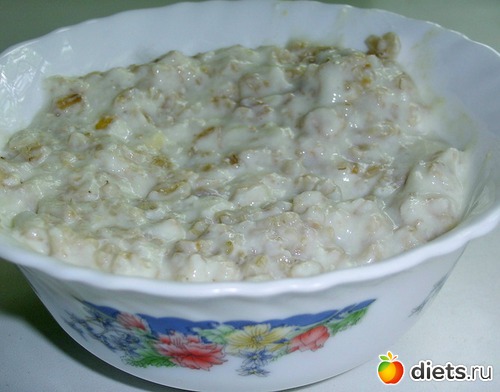 Завтрак - апельсиновый сок, кофе, овсянка на молоке: