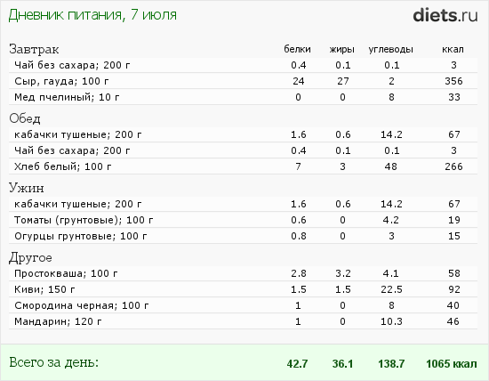 дневничок питания на 7.07